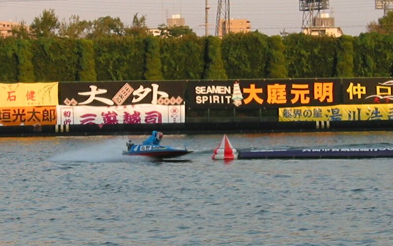 ![]() | 前半は写真を撮り逃しましたが、6枠で2着でした。このレースはインコースからキッチリ逃げて1着。今節は2日目に3着を走ってた所を2着になろうと無理な突っ込みをして転覆してしまい大減点をくらったのですが、その後好調なレースが続いただけに「あのとき無理をしなければ・・」と悔やまれます。 |